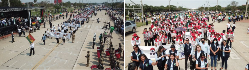 Santa Cruz, 26 de septiembre de 2022 (INE).– Cerca de 200 funcionarios del Instituto Nacional de Estadística (INE) se sumaron el sábado a la celebración por los 212 años del grito libertario del departamento cruceño, y junto a distintas organizaciones sociales rindieron homenaje a los actos festivos encabezados por el presidente del Estado Plurinacional, Luis Arce Catacora; el alcalde de Santa Cruz de la Sierra, Jhonny Fernández y la Asociación de Municipios de Santa Cruz (Amdecruz).
