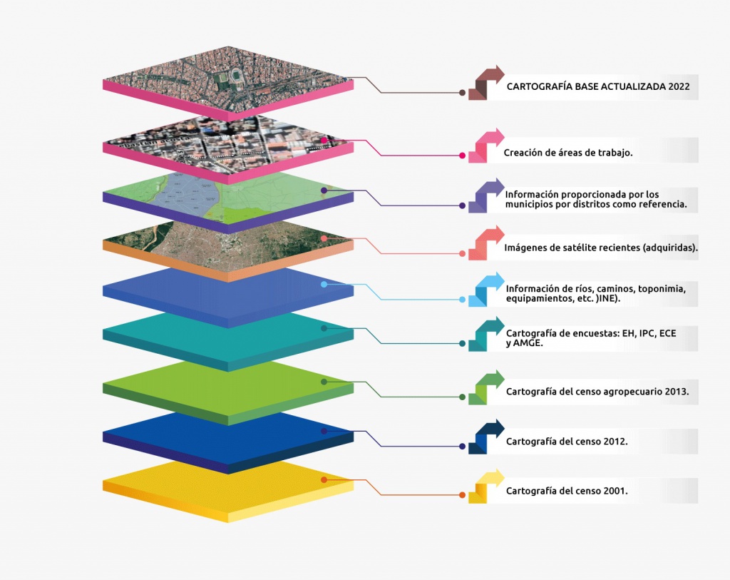 Para la construcción de la cartografía base estadística se recopiló información del INE, como: