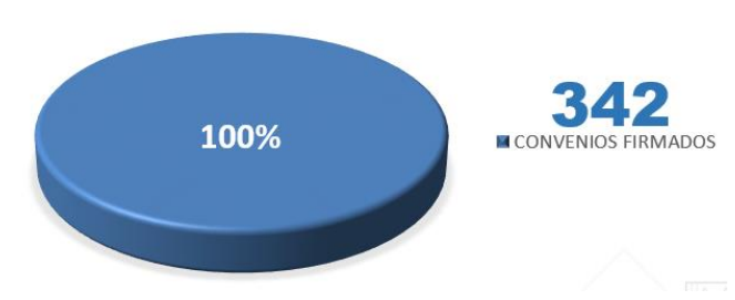 A nivel general se tiene un registro de 296 convenios firmados equivalente a un 86.55% de los 342 municipios que tiene Bolivia.